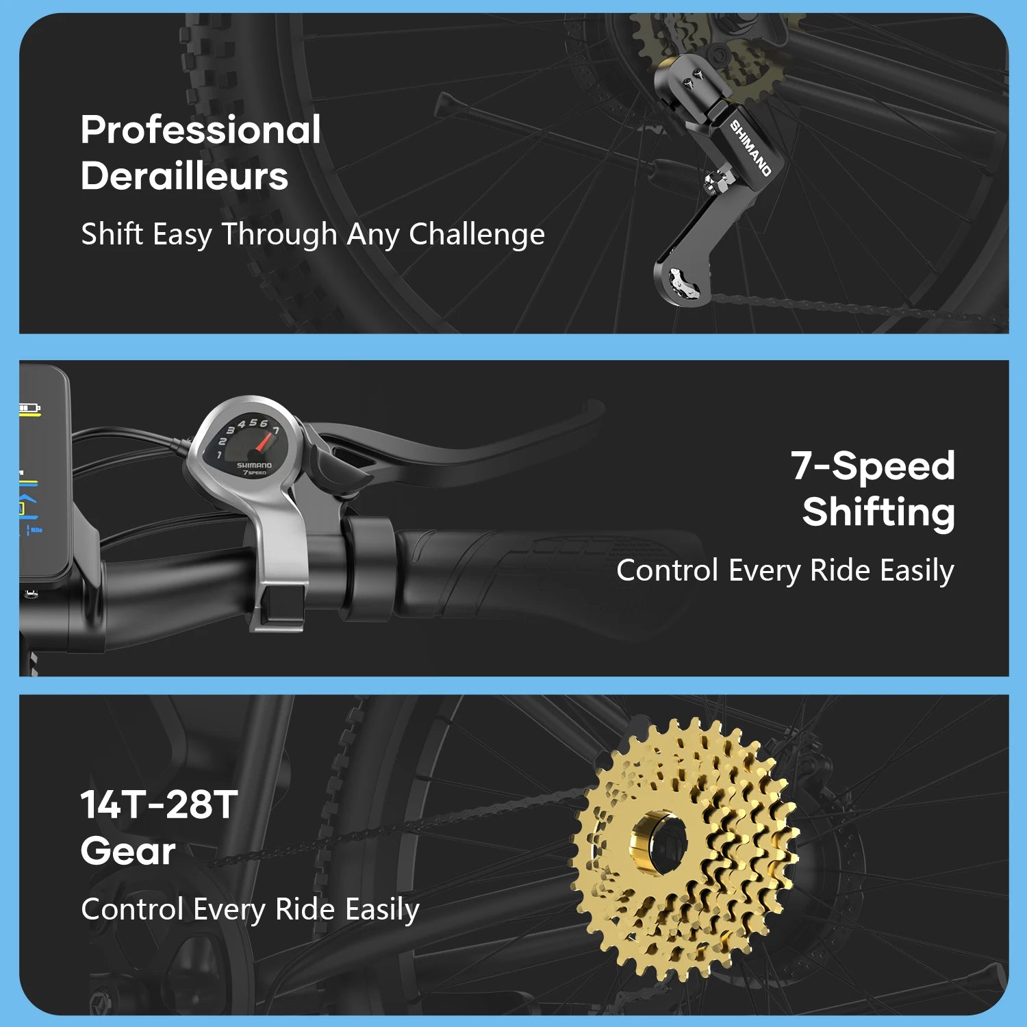 X-koala Electric Bike 1000W Peak Motor 25MPH 7 Speed Commuter Waterproof